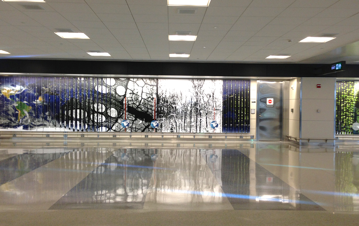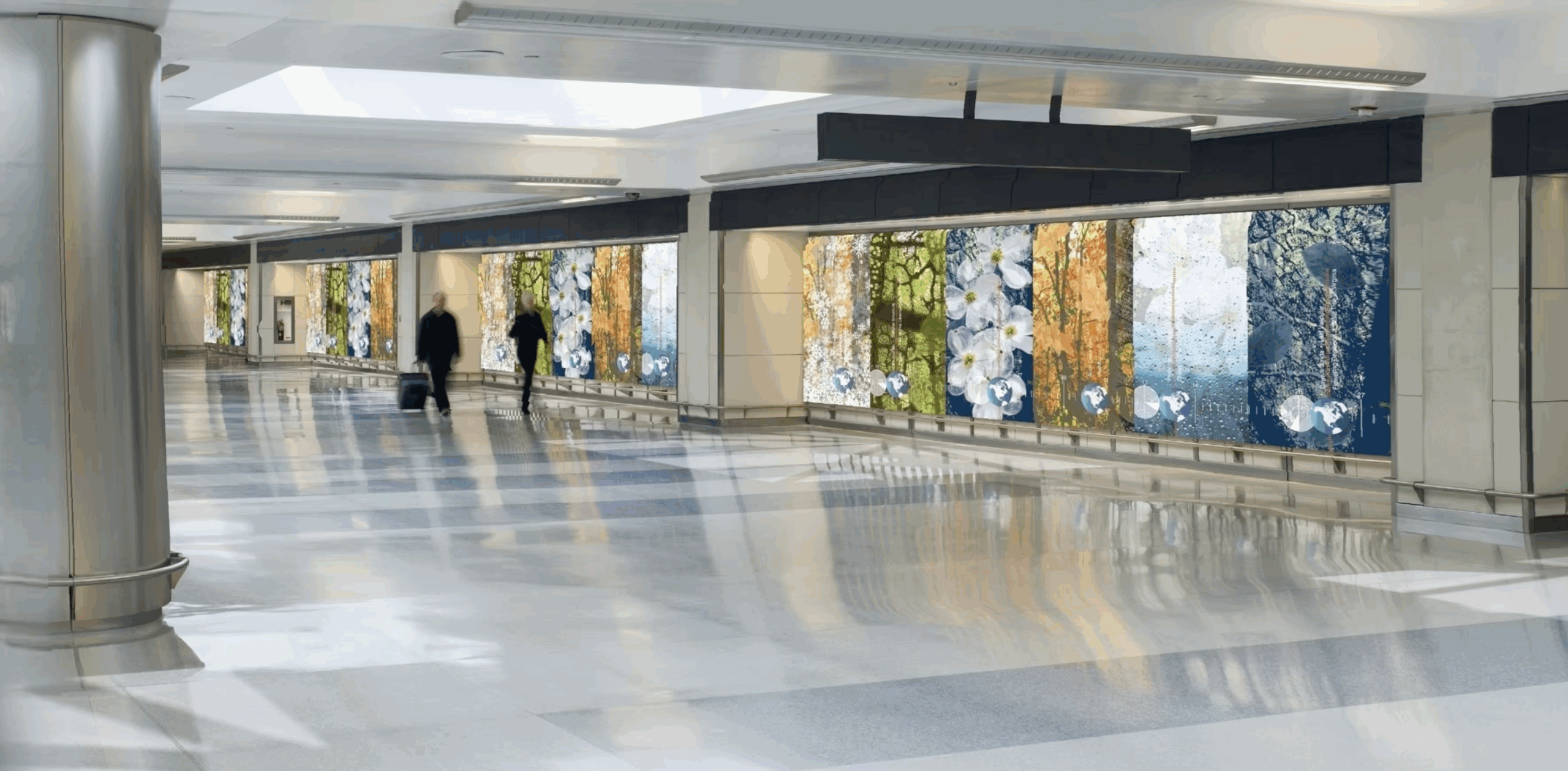 Softmotion’s lenticular production allowed Kim’s concept to unfold across a series of large-format panels, each calibrated for clarity, depth, and seamless visual flow. As travelers move through the corridor, the artwork animates gradually, encouraging both brisk movement and lingering moments of discovery.